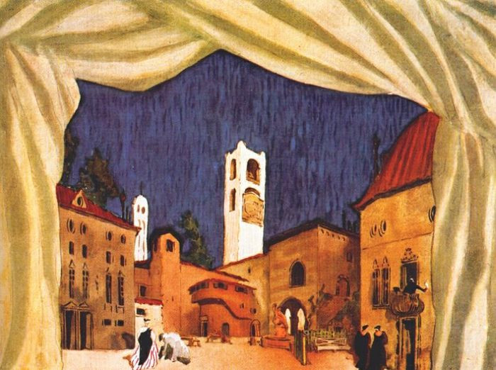 Репродукция картины "Эскиз декорации к балету "Женщины в хорошем настроении"" художника "Бакст Леон", артикул: 7255