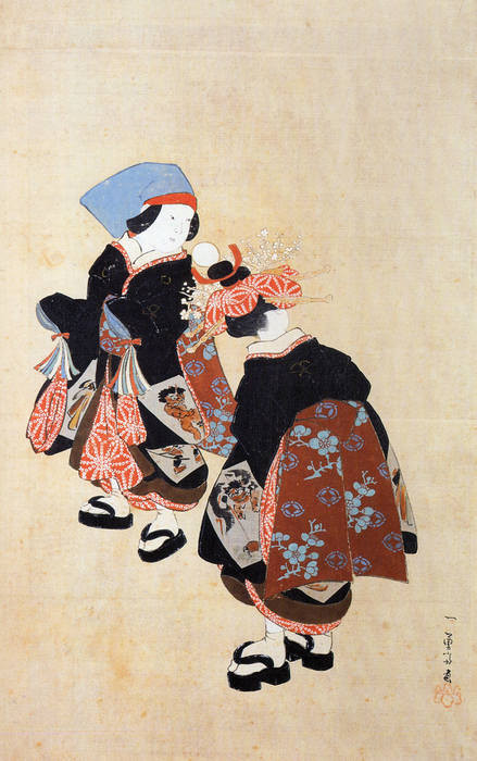 Репродукция картины "Two Kamuro waiting for a courtesan" художника "Утагава Куниёси", артикул: 76795
